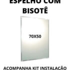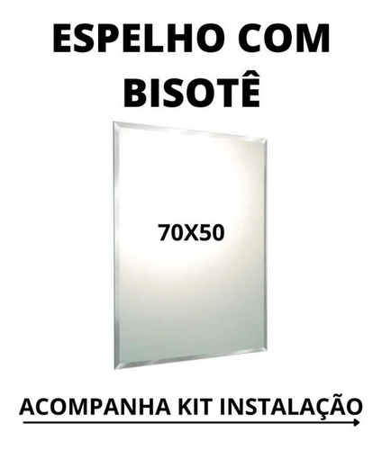 ESPELHO RETANGULAR 70X50X4mm LAPIDADO COM BISOTÊ DE 1,5CM + KIT INSTALAÇÃO COM BOTÃO FRANCÊS + BUCHA + PARAFUSO