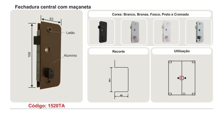 FECHADURA PARA PORTA DE GIRO • Fechadura para porta de giro(pivotante) de vidro temperados • Contém uma fechadura com miolo e duas chaves • Para vidro 8mm e 10mm • Não acompanha Maçaneta Componentes do Kit: • 1 – Fechadura com miolo e duas chaves Marca – DF Ferragem Modelo – Fechadura para porta de giro para usar com maçaneta (Não acompanha maçaneta) Linha – Premium, Material – Alumínio Peças incluídas – 1 fechadura com miolo e duas chaves, Acabamento – Pintura eletrostática Uso recomendado – Porta de giro de vidro temperado
