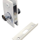 Kit Fechadura Central de Alumínio e Espelho para Alvenaria para Portas de Vidro Temperado Pivotante